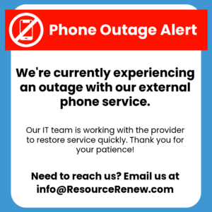 Resource Renew is currently experiencing an outage with our external phone service.