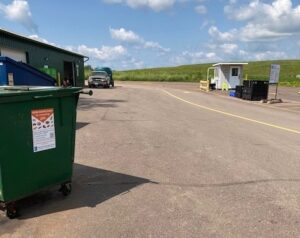 Drive into the gravel circular lot and look for the two carts (not a dumpster). Use the self-serve bag dispenser onsite or visit a Resource Renew facility for free compostable bags. This site is available for use between the hours of 8am – 10pm.