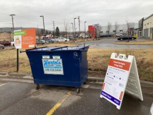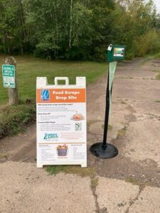 The food scrap dumpster is located near the Household Hazardous Waste Facility and the Recycling Center at the Carlton County Transfer Station. Free compostable bags are available from the onsite attendant.