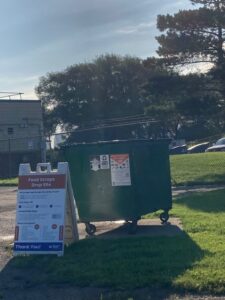 The food scrap dumpster is inside the fence near the exit gate. Please drive up to the gatehouse and let the staff know you are there to drop off food waste. Free compostable bags are also available from staff at the gatehouse.