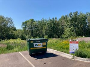 The food scrap dumpster is located near the Household Hazardous Waste Facility and the Recycling Center at the Carlton County Transfer Station. Free compostable bags are available from the onsite attendant.